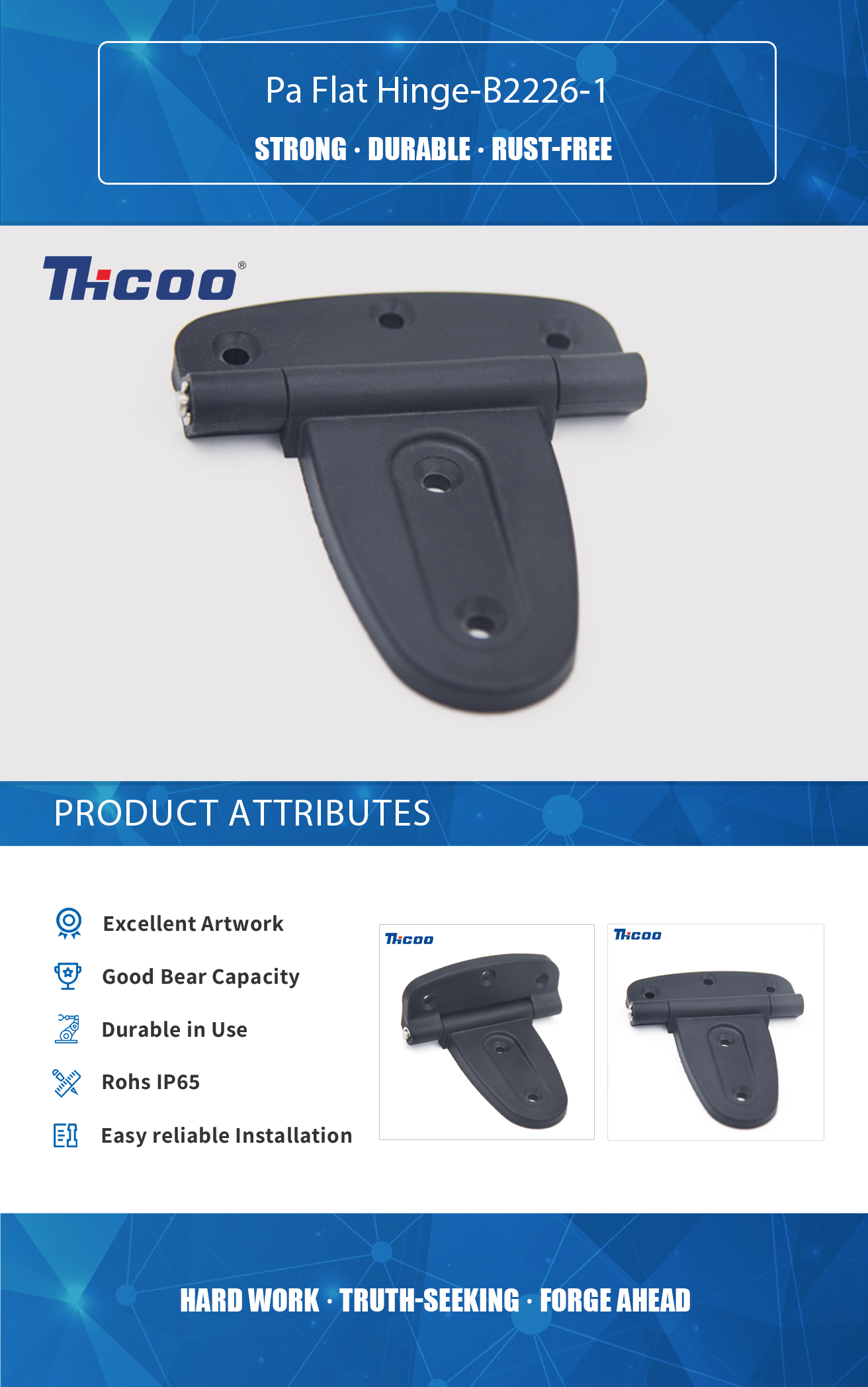 Vi har vores eget testlaboratorium og det avancerede og komplette inspektionsudstyr, som kan sikre kvaliteten af ​​produkterne. Pa Flat Hinge-B2226-1 kan bruges i en række forskellige applikationer og fås i en række størrelser og stilarter, der passer til forskellige design og funktionelle behov. Justerbarhed: Mange PA flade hængsler er designet til at være justerbare, så delenes position kan finjusteres efter installationen.
